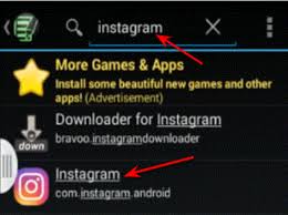 - Berikutnya bukalah aplikasi tersebut kemudian klik di pencarian instagram, maka akan muncul aplikasi instagram, dan tekanlah.